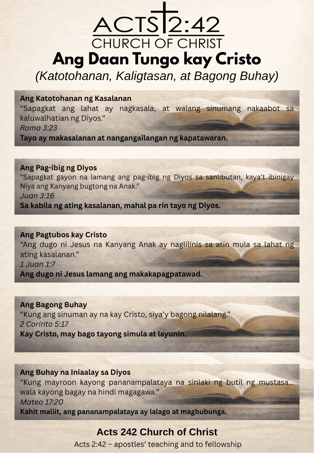 Download and share these resources freely — for personal study, evangelism conversations, and discipleship. All materials are prepared by Acts 242 Church of Christ.